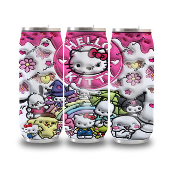 แก้วน้ำสแตนเลสโคล่าเก็บความร้อนผนังสองชั้นพิมพ์ลายคิตตี้12ออนซ์17ออนซ์กระป๋องพร้อมหลอด